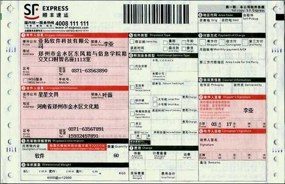 順豐速運(yùn)快遞打印模版,在“快遞單模板”中點(diǎn)擊“在線下載”即可下載該快遞單打印模板,其中寄件人信息可以在“系統(tǒng)管理”-》“系統(tǒng)參數(shù)設(shè)置”中進(jìn)行維護(hù)。如有其他問題,請與我們技術(shù)支持聯(lián)系解決!