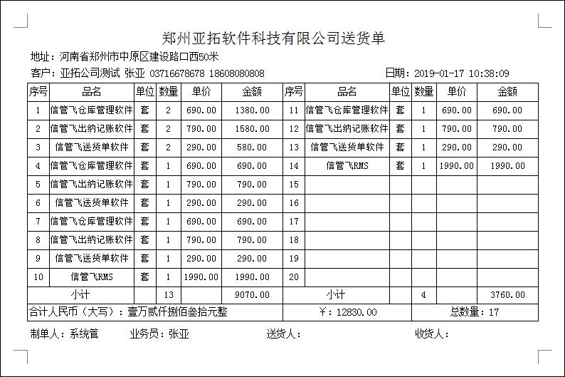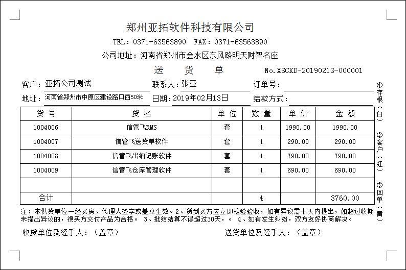 信管飛送貨單打印軟件是一款針對中小型企業(yè)開發(fā)的集送貨管理(發(fā)貨管理)、退貨管理(銷售退貨)、銷售收款(應(yīng)收款管理)等功能為