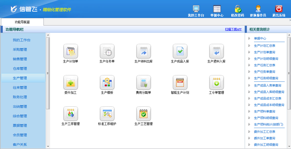 生產(chǎn)管理功能導(dǎo)航