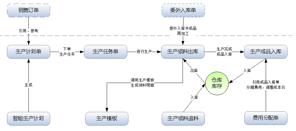 包括功能:生產(chǎn)模板、生產(chǎn)計(jì)劃單、生產(chǎn)任務(wù)單、生產(chǎn)領(lǐng)料出庫(kù)單、生產(chǎn)成品入庫(kù)單、生產(chǎn)退料入庫(kù)單及智能生產(chǎn)計(jì)劃等。