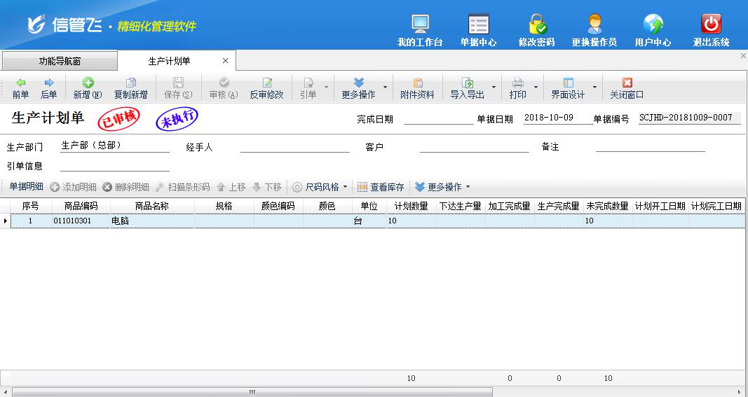 生產(chǎn)計(jì)劃單,用于管理工廠的生產(chǎn)指標(biāo)和生成任務(wù)計(jì)劃,通過生產(chǎn)計(jì)劃單可以使生產(chǎn)活動(dòng)有計(jì)劃、有步驟的進(jìn)行。