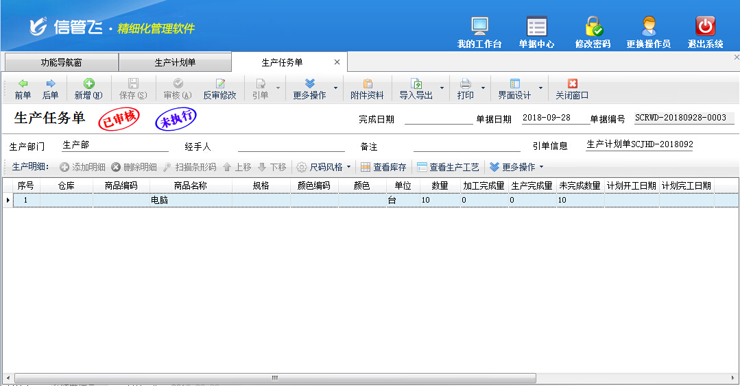 生產(chǎn)任務(wù)單,即生產(chǎn)過程中的任務(wù)加工單,用于執(zhí)行生產(chǎn)計(jì)劃,進(jìn)入實(shí)際生產(chǎn)階段。