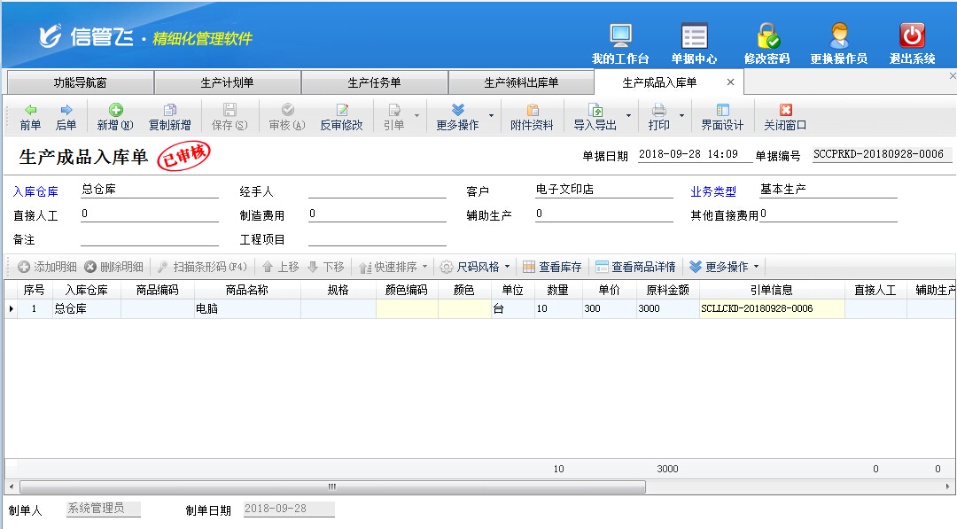 生產(chǎn)成品入庫(kù)單,用于生產(chǎn)成品(包括生產(chǎn)成品及生產(chǎn)半成品)的入庫(kù)。