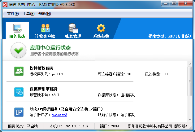 # 2.1. 運行“信管飛應用中心”程序