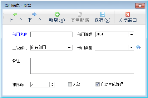 新增部門:增加部門信息,復制新增可以復制當前的部門進行修改后保存。
