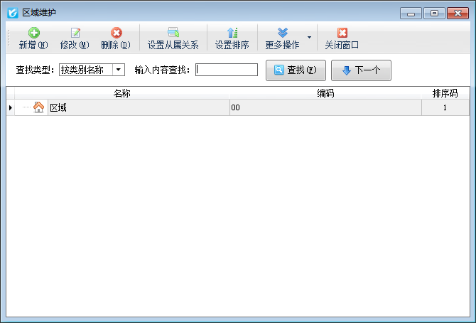 ????在功能導航窗點擊“基礎資料”—》“區域維護”,即可進入行政區域管理功能,其界面如下圖所示: