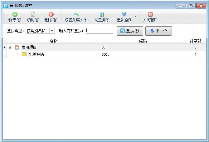 新增費用項目:點“新增”按鈕,可以在選擇的當前費用項目下增加下級費用項目。