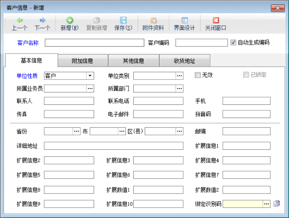 客戶名稱:必填項,默認客戶名稱不允許重復(可在“系統參數設置”功能的業務參數中設置為允許“往來單位名稱重復”)。