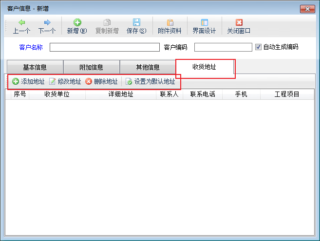 收貨地址:可添加,修改,刪除客戶的收貨地址,設置客戶地址為默認地址。