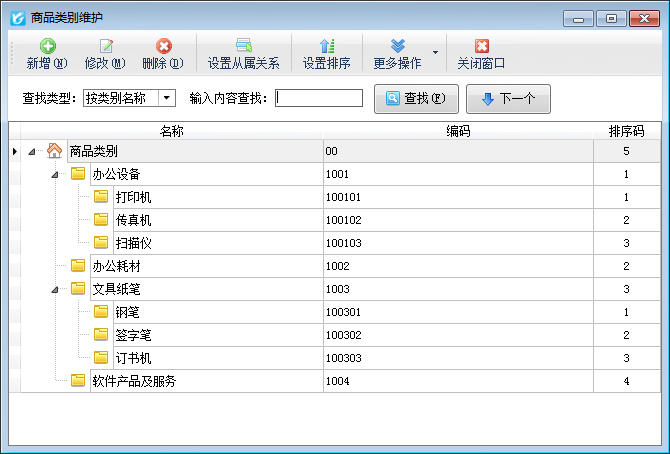 商品類別:點工具欄中的“商品類別”按鈕,可對商品的分類進行維護。