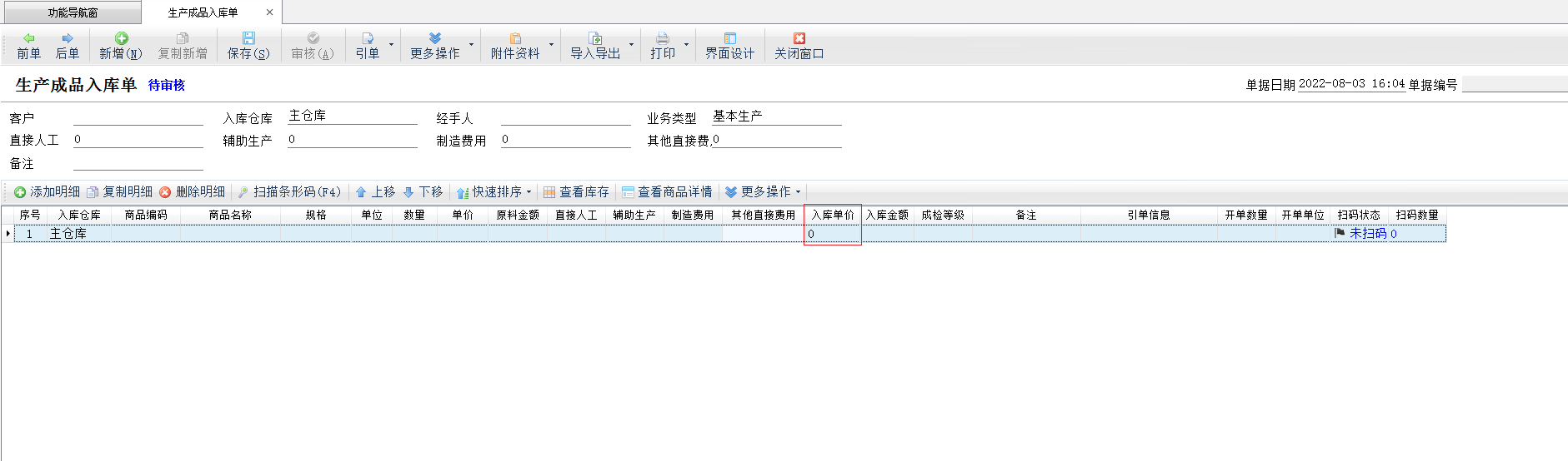 生產入庫價:生產成品入庫單默認將調取這個價格作為成本價入庫。