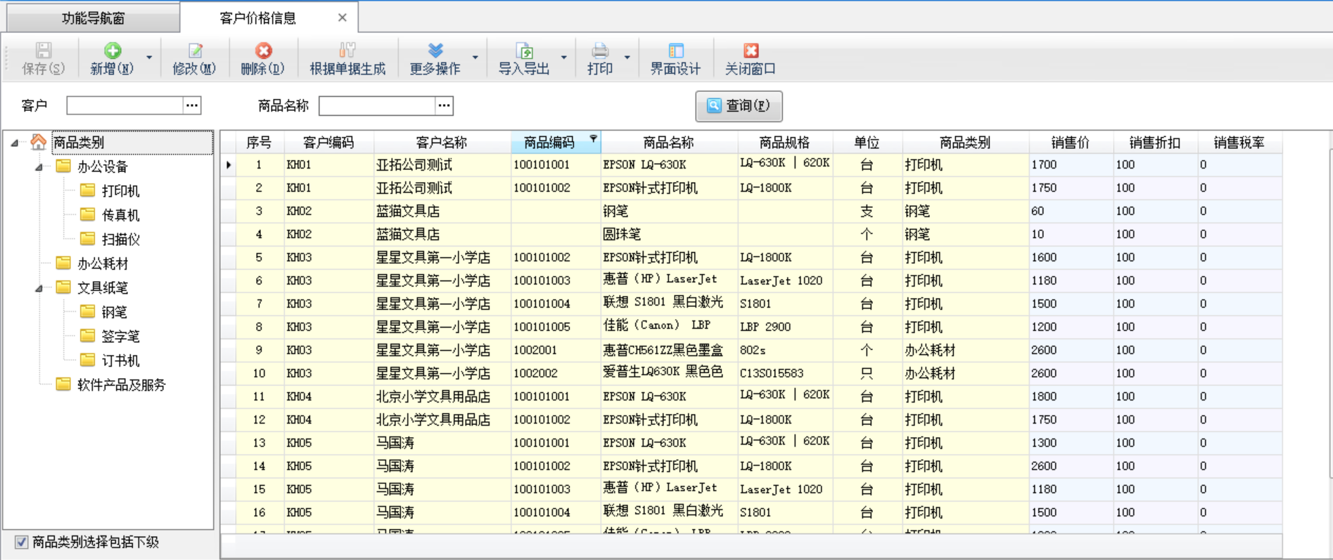 查詢:可以根據客戶名稱或者是商品名稱對客戶價格進行查詢。