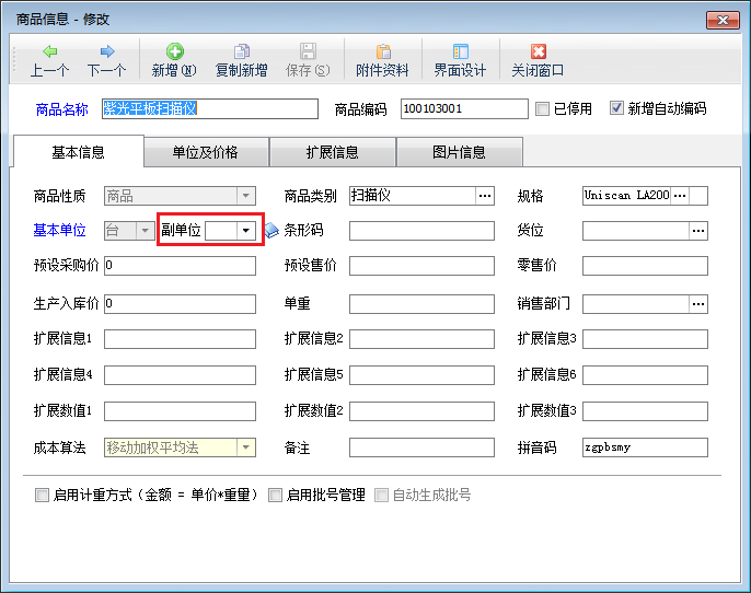 ????副單位用于處理布匹、鋼材等行業(yè),倉庫庫存需要管理兩種單位的數(shù)量(比如布匹行業(yè)既要知道有多少米,又要知道有多少卷),兩種單位之間并不存在絕對(duì)的比例關(guān)系(如果是絕對(duì)的比例關(guān)系,可以使用輔助單位)。