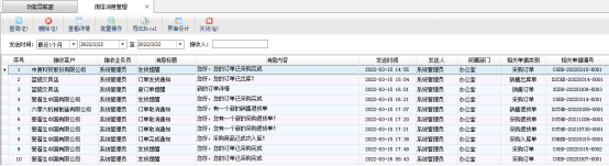????在功能導航窗點擊“擴展應用”—》“微信消息管理”可以打開微信消息管理界面,在此界面可以查看微信消息的發送狀態,接收客戶、消息內容等,其界面如下圖所示。