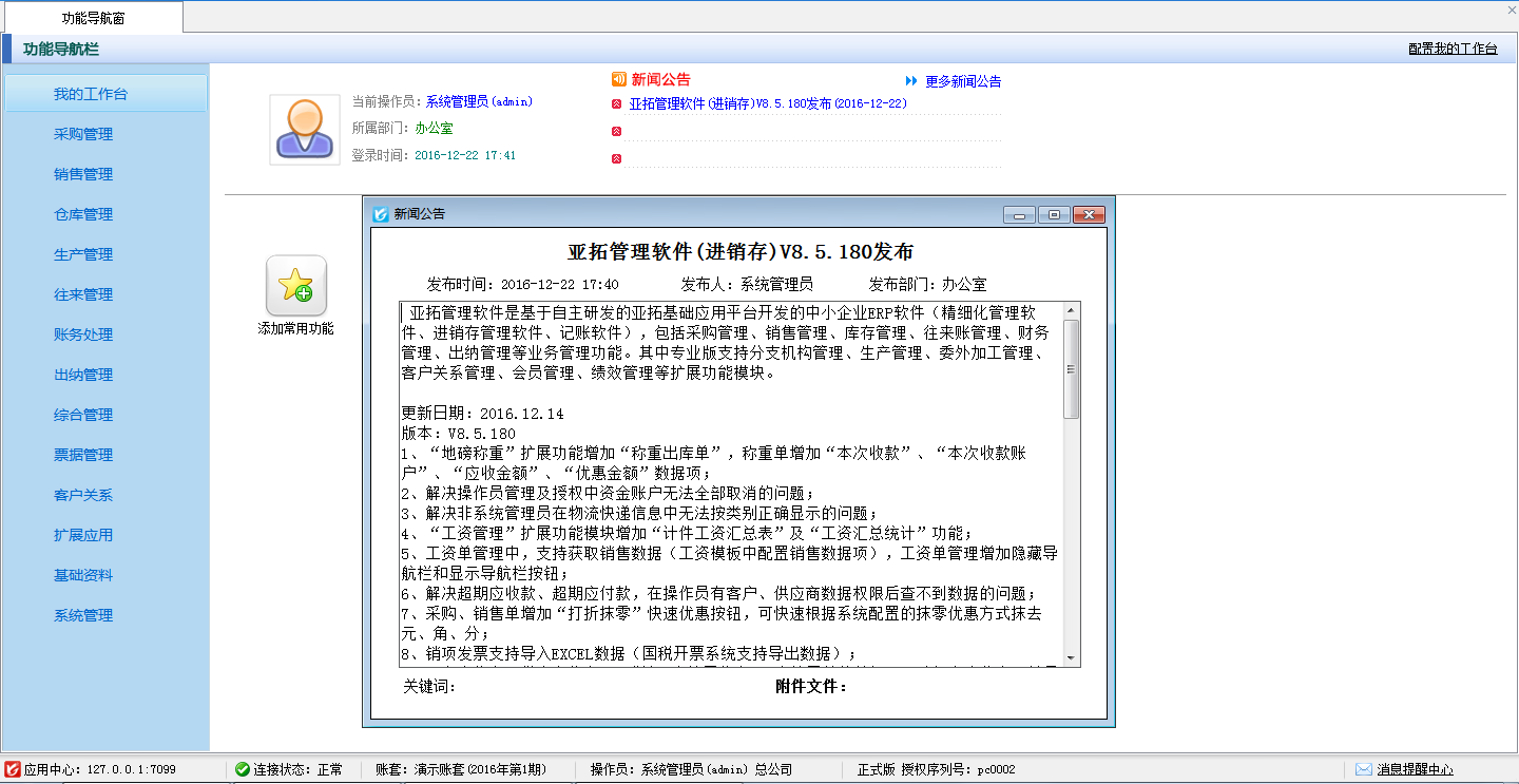 ????操作員登錄軟件后在“我的工作臺”—》“新聞公告”即可查看已經發布過的新聞公告信息,如下圖所示。