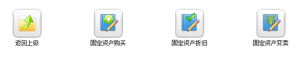 ????在功能導航窗,點“財務處理”—》“固定資產”功能組,然后進入固定資產管理功能,包括“固定資產購買”、“固定資產折舊”、“固定資產變賣”等三個功能模塊,如下圖所示: