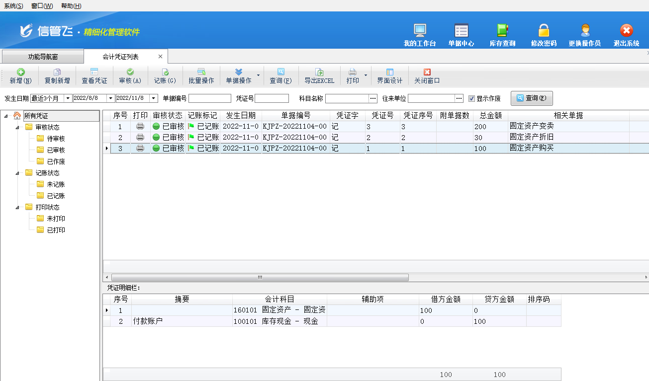 審核:選擇一個“待審核”的會計憑證,在工具欄點擊“審核”按鈕可以審核會計憑證。