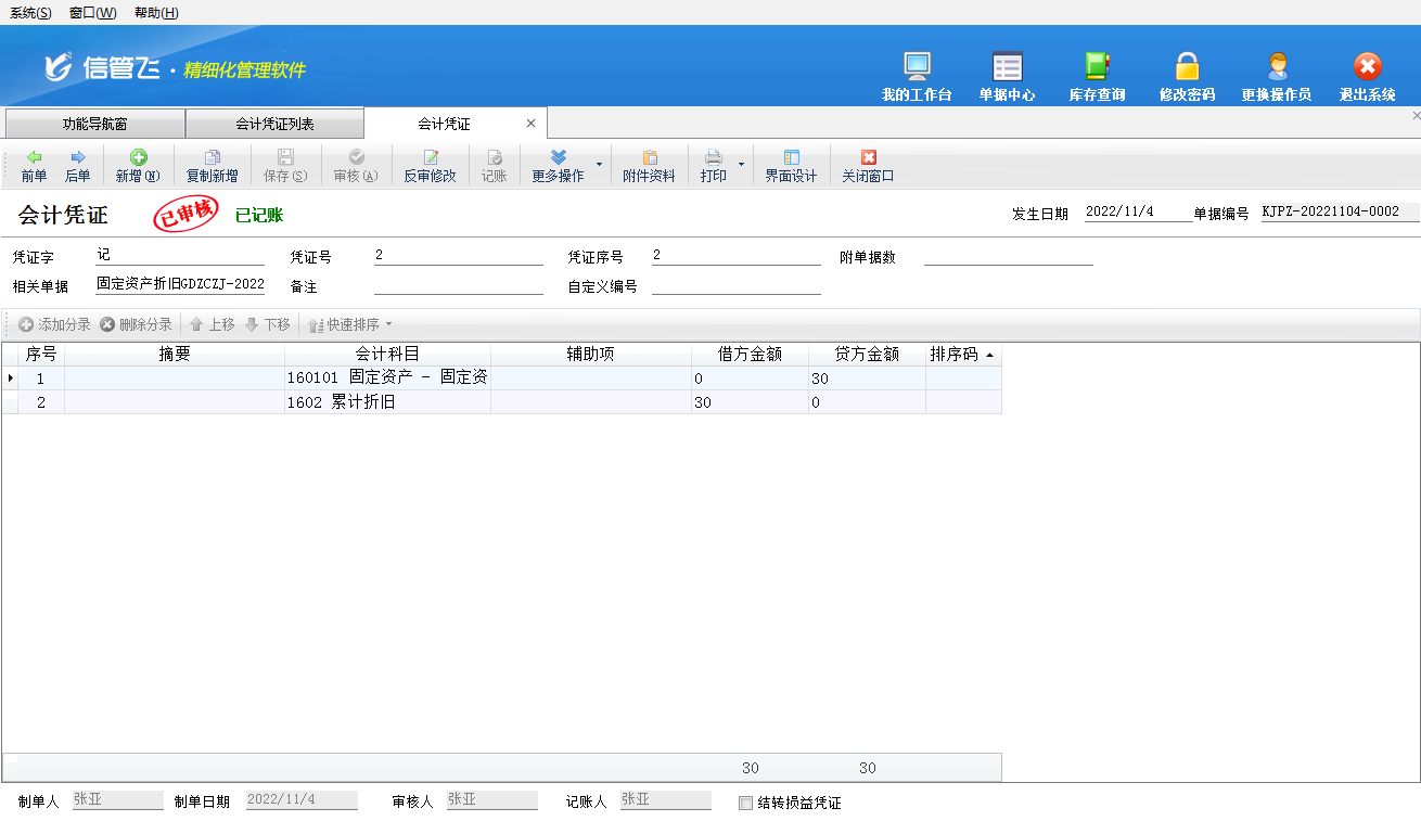 ????保存審核單據后,軟件會自動生成相應的會計憑證,點“更多操作”—》“調閱憑證”可以查看會計憑證。