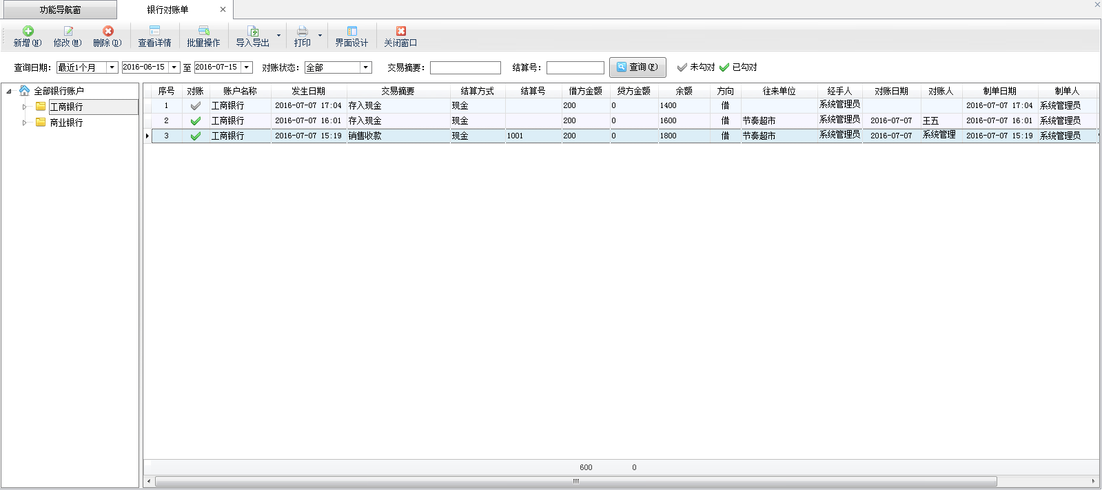 ????銀行對賬功能列表: