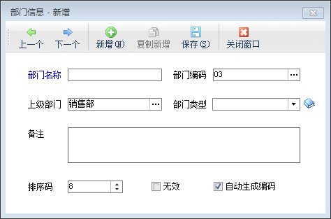 所屬部門:必填數據項,可選擇員工的所屬部門。