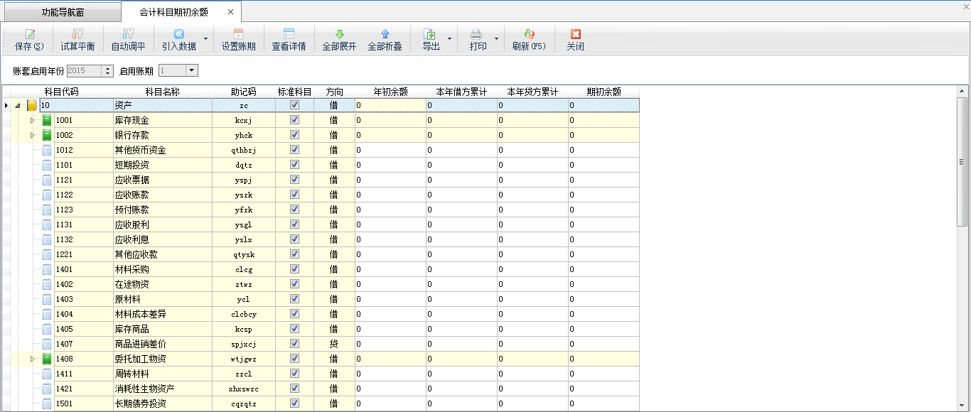 期初開賬:設定啟用軟件時間(即開賬日期);