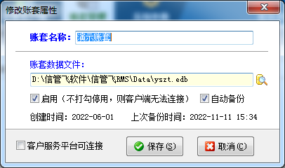 ????(2)修改:修改賬套屬性時,如果有客戶端已登錄這個賬套,則需要先退出客戶端程序,然后再進行賬套屬性的修改。修改賬套屬性時,可以不啟用賬套(即停用),停用后的賬套客戶端程序無法連接;設置是否自動備份賬套,如果設置自動備份,并且系統參數設置中也啟用了賬套備份,則軟件會按照賬套備份參數中的時間間隔定期備份此賬套。