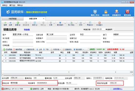 ????亞拓管理軟件和紅管家送貨單軟件在新增或修改業務單據時,都支持對單據明細進行快速排序。軟件中單據明細列表默認按照選擇商品的先后順序進行排序,如果用戶想根據商品名稱或者商品編碼對單據明細進行排序,可以使用“快速排序”功能。下面我們以亞拓管理軟件專業版的銷售出庫單為例介紹一下對單據明細快速排序的操作方法。