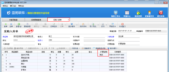 ????采購單明細查詢中的擴展信息項是調用采購單界面的單據明細中的擴展信息。如需要查詢單據主體中調用的擴展信息項,請在“采購單匯總表”中設置查詢。