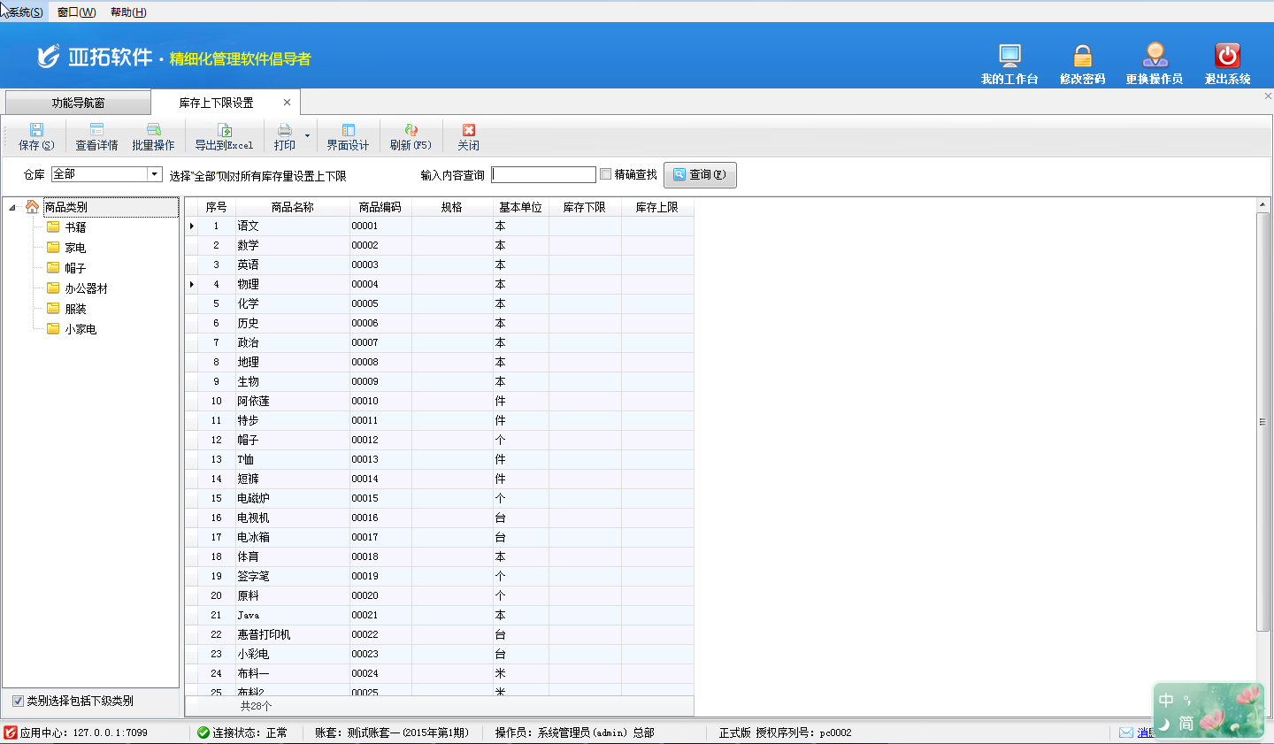 ????亞拓管理軟件是基于自主研發的亞拓基礎應用平臺開發的中小企業ERP軟件(精細化管理軟件、進銷存管理軟件、記賬軟件),包括采購管理、銷售管理、庫存管理、往來賬管理、財務管理、出納管理等業務管理功能,并支持分支機構管理、生產管理、委外加工管理、客戶關系管理、會員管理、績效管理等擴展功能模塊。