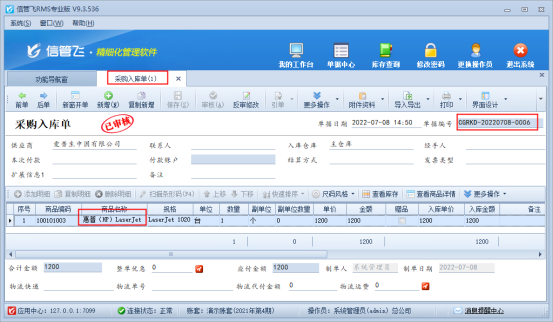 ????信管飛RMS(進銷存管理軟件)、信管飛倉庫管理軟件中業務單據已審核后默認是不允許刪除的,如下圖所示,刪除按鈕為灰色的,不可操作,那么如果單據審核后發現此單做錯了,需要刪除,如何操作呢?本篇文章詳細介紹一下倉庫管理軟件內如何刪除已審核的業務單據?