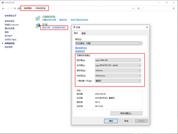 ????出現這個問題的原因是因為Windows操作系統的日期格式與軟件數據庫中的日期格式設置不一致導致的。處理方法是調整系統日期顯示格式,打開“控制面板”→“時鐘和區域”→“更改日期、時間或數字格式”,如下圖所示設置系統日期格式,然后點擊應用、確定按鈕完成操作。