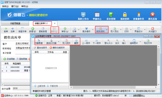????信管飛RMS軟件是進銷存一體化的軟件,支持開單上傳附件資料管理單據附件,本篇文章以信管飛RMS專業版為例介紹一下如何設置打開銷售出庫單可直接查看附件資料窗口?