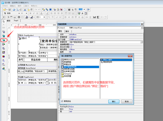 ????參數設置完成后,新開銷售出庫單,保存單據后點擊“打印”—》“打印格式設計”—》“設計格式”,在打印模板上添加打印綁定客戶微信二維碼,如下圖所示: