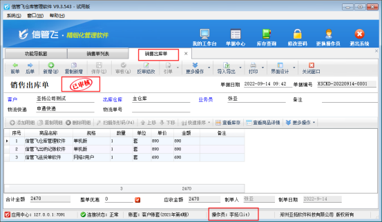????信管飛倉庫管理軟件、信管飛RMS軟件等支持新增多個操作員并可設置操作員權限,有用戶需要開銷售單需要多人審核,軟件支持設置多級審核,本文以“信管飛倉庫管理軟件”為例示范下單據多級審核功能如何使用?