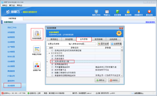 ????信管飛RMS軟件、信管飛倉庫管理軟件支持商品在有成本的情況下正常出入庫,也有部分客戶需要設置商品在成本為0的情況下允許商品出庫,如何設置呢?本文以“信管飛RMS軟件”為例,介紹下如何設置允許商品0成本出入庫。