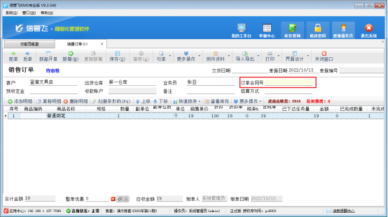 ????信管飛RMS軟件支持開銷售訂單保存自動生成對應的單據編號,同時軟件支持開單錄入自定義編號(訂單合同號),部分用戶在開銷售訂單錄入自定義編號時會出現編號無法直接錄入的情況,本篇文章以信管飛RMS軟件為例介紹下如何解決開銷售訂單時自定義編號無法錄入的問題?