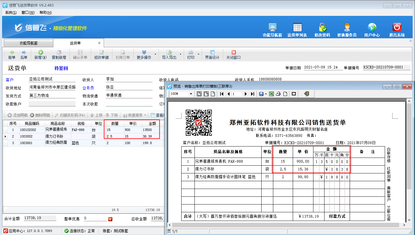 ????歡迎下載試用可調整模板合并打印的開單軟件:信管飛送貨單軟件