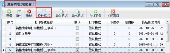 ????本文以信管飛送貨單為例,示范下如何設置常用的打印模板為默認模板。首先先到打印模板設計界面,在開單界面,點擊工具欄中的“打印”按鈕下的“打印格式設計”進入送貨單打印格式設計界面,在此界面進行設置默認模板操作。有以下三種操作形式: