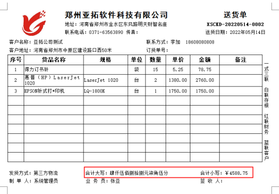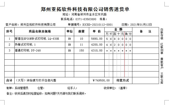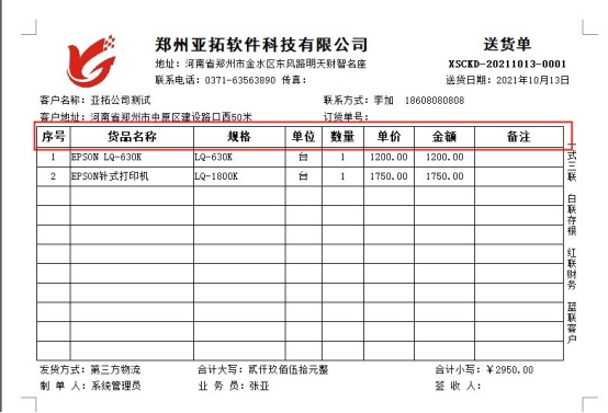????設置好之后,重新打印送貨單,即可正常打印,如下圖所示。