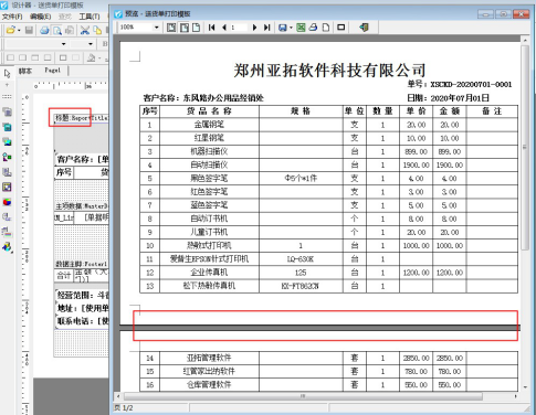 ????浮動邊條添加到多聯備注內容后,點擊打印預覽可以看到打印多頁時,每頁都顯示出了備注內容,如下圖所示: