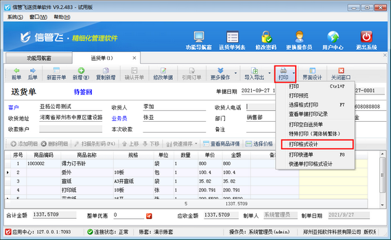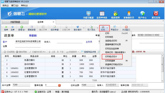 ????歡迎下載試用可自定義設計打印模板的軟件:信管飛送貨單軟件