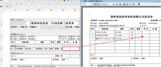 ????新增一個送貨單,保存單據后預覽默認模板顯示單價和金額,如下圖所示: