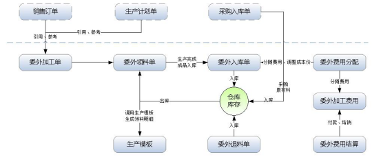 ????對委外加工需要我們提供原材料(即我們采購的原材料),需代加工廠生產(chǎn)時,我們出庫運送給代工廠(也有可能采購的原材料直接存放在代加工廠倉庫),這種業(yè)務(wù)模式軟件也提供了較好的支持。