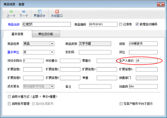 ????入庫單價:進(jìn)入倉庫的成本價,軟件默認(rèn)取商品信息中的“生產(chǎn)入庫價”,也可以設(shè)置為根據(jù)原料金額和直接費用等核算出成本價。