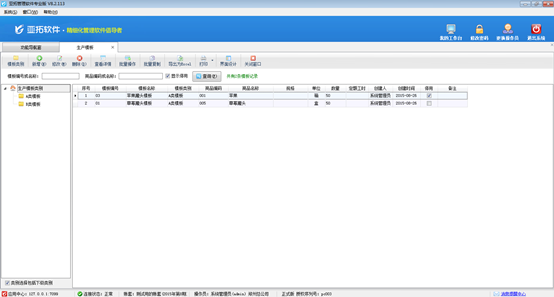 ????批量操作:在生產(chǎn)模板界面點工具欄中的“批量操作”按鈕,可以多選記錄,執(zhí)行批量刪除操作。