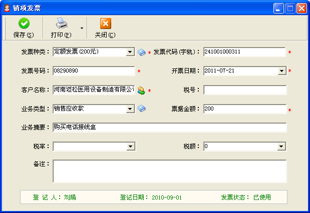 一、發(fā)票的登記銷項(xiàng)發(fā)票目前主要分為定額發(fā)票、增值稅發(fā)票、一般機(jī)打發(fā)票三種,公司會(huì)計(jì)人員在稅局購領(lǐng)后,需要在第一時(shí)間內(nèi),在《紅管家財(cái)務(wù)出納記賬系統(tǒng)》中進(jìn)行登記。主要登記信息包括:發(fā)票種類:定額、增值稅、一般發(fā)票(手開/機(jī)打)。發(fā)票字軌:即發(fā)票代碼頭,本批發(fā)票前綴相同的特定字符。起始號(hào)碼:數(shù)字,用于批量生成發(fā)票號(hào)碼。發(fā)票張數(shù)購買日期及購買人發(fā)票樣本附件 二、發(fā)票的申領(lǐng)(1)部門負(fù)責(zé)人和銷售經(jīng)理可根據(jù)項(xiàng)目要求,從公司紅管家財(cái)務(wù)記賬軟件中打印出開具發(fā)票的申請單,然后報(bào)公司財(cái)務(wù)室負(fù)責(zé)人簽字后,由專職會(huì)計(jì)負(fù)責(zé)開具正式發(fā)票(機(jī)打發(fā)票需要登錄地稅系統(tǒng)打印)。(2)會(huì)計(jì)在紅管家的發(fā)票管理中在對應(yīng)的發(fā)票