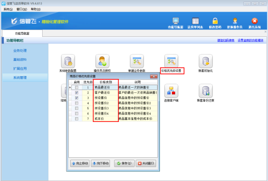 在快節(jié)奏的商業(yè)環(huán)境中,時(shí)間就是效率,效率就是競(jìng)爭(zhēng)力。送貨單軟件深諳此道,特別推出價(jià)格優(yōu)先級(jí)設(shè)置功能,幫助商家快速、準(zhǔn)確地完成開單工作,讓您的業(yè)務(wù)運(yùn)作更加流暢。 在送貨單軟件的功能導(dǎo)航窗中,輕松點(diǎn)擊“系統(tǒng)管理”—“價(jià)格優(yōu)先級(jí)設(shè)置”,即可進(jìn)入價(jià)格優(yōu)先級(jí)設(shè)置窗口。 啟用并排序價(jià)格策略: 在價(jià)格優(yōu)先級(jí)設(shè)置窗口中,您可以勾選需要啟用的價(jià)格策略,如商品最近價(jià)、客戶最近價(jià)、商品預(yù)設(shè)售價(jià)等,并通過“向上移動(dòng)”和“向下移
