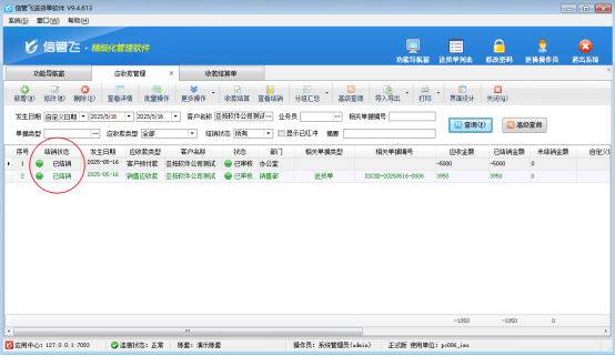 信管飛軟件支持登記客戶預(yù)付款,客戶預(yù)付款是客戶提前預(yù)付給我們的金額,可以用來沖銷銷售產(chǎn)生的應(yīng)收款,預(yù)付款抵消應(yīng)收款后多余部分需要退回給客戶,該如何處理? 如圖,客戶預(yù)付款是5000元,客戶送貨單消費(fèi)是3950元,預(yù)付款抵消銷售單應(yīng)收款多余1050元,多余金額需要退回給客戶。 在應(yīng)收款管理界面點(diǎn)擊收款結(jié)算,進(jìn)入收款結(jié)算單單據(jù)界面,在該界面錄入收款金額和收款賬戶,客戶預(yù)付款和銷售應(yīng)收款抵消結(jié)算,多余預(yù)付退回,收款金額輸入負(fù)1050元,點(diǎn)擊自動(dòng)分配,如圖&