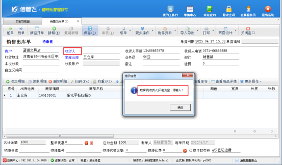 在進銷存管理領域,企業對于開單流程的靈活性有著極高的要求。不同的業務場景和客戶需求,使得企業在處理銷售單時,對于收貨人信息的錄入有著不同的規定。信管飛系列進銷存軟件,如信管飛送貨單軟件、信管飛 RMS、信管飛倉庫管理軟件等,憑借其強大的功能和靈活的設置,完美適配企業的多樣化需求。 精準記錄,查詢無憂 信管飛系列軟件支持在開銷售單時錄入收貨人信息。這一貼心設計,讓企業在后續查詢單據商品流向時更加便捷高效。通過簡單的操作,就能清晰知曉是哪位客戶收到了貨物