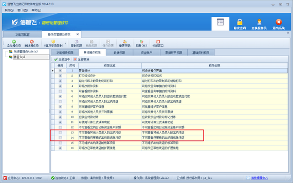 在財務工作中,出納憑證的準確性與安全性至關重要。為避免因權限混亂導致數據篡改或誤操作,信管飛出納記賬軟件通過精細化權限管理功能,幫助企業實現“操作員不可修改其他人員錄入的出納憑證”的嚴格管控,有效降低財務風險。 系統管理員登錄軟件后,進入“系統管理”—》“操作員及授權”界面,選擇目標操作員賬號。在“其他操作權限”界面取消勾選“可修改其他人員錄入的出納憑證”,保存后權限立即生效。 例如,設置操作員“張亞”不可修改其他人員錄入的出納憑證,操作員“張亞”在修改其他人員錄入的出納憑證時,系統將